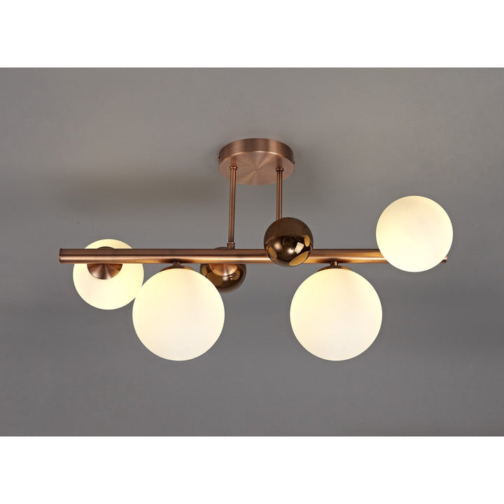 Ravenna Semi Flush Ceiling Light 4 Light Antique Copper/Opal & Copper Glass