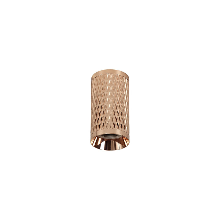 The cylindrical format of the Silence range is decorated with a diamond imprint producing a mesh like effect. These light fittings are available as a surface mounted ceiling fitting, wall lamps, track spotlight or surface mounted adjustable spotlight. The wide variety of colour finishes available, complementing face ring accessories and the pendant kit offers a greater number of lighting solutions for all kinds of room settings and applications.