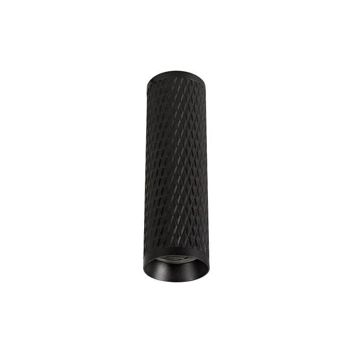 The cylindrical format of the Silence range is decorated with a diamond imprint producing a mesh like effect. These light fittings are available as a surface mounted ceiling fitting, wall lamps, track spotlight or surface mounted adjustable spotlight. The wide variety of colour finishes available, complementing face ring accessories and the pendant kit offers a greater number of lighting solutions for all kinds of room settings and applications.
