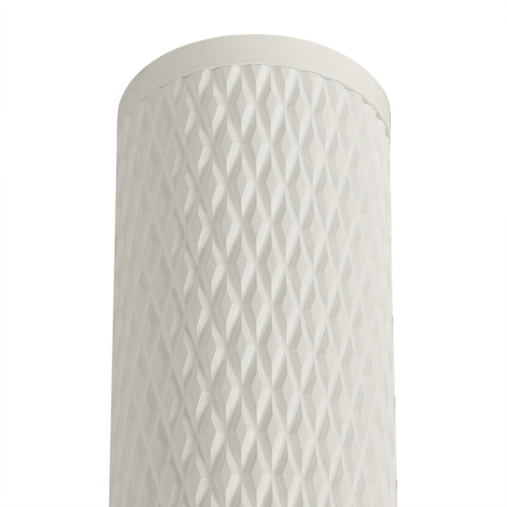 The cylindrical format of the Silence range is decorated with a diamond imprint producing a mesh like effect. These light fittings are available as a surface mounted ceiling fitting, wall lamps, track spotlight or surface mounted adjustable spotlight. The wide variety of colour finishes available, complementing face ring accessories and the pendant kit offers a greater number of lighting solutions for all kinds of room settings and applications.