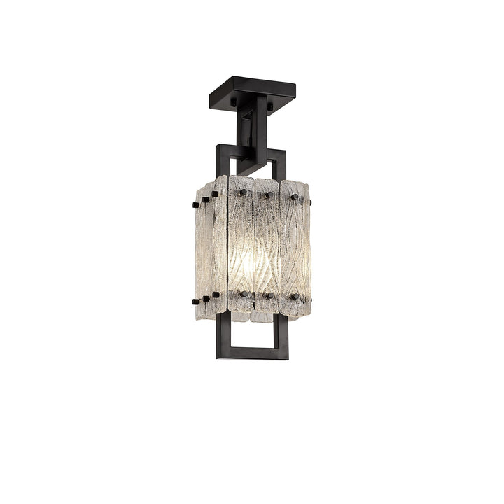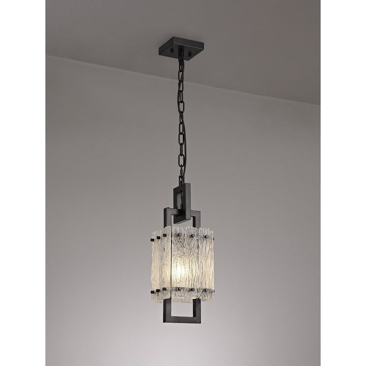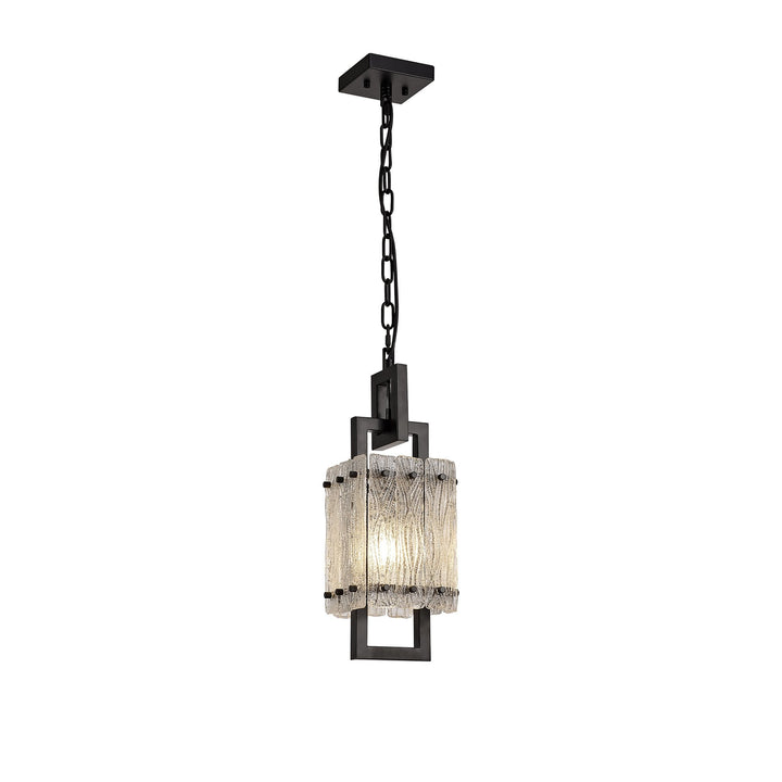 Sorrel Small Square Pendant 1 Light Matt Black/Crystal Sand Glass