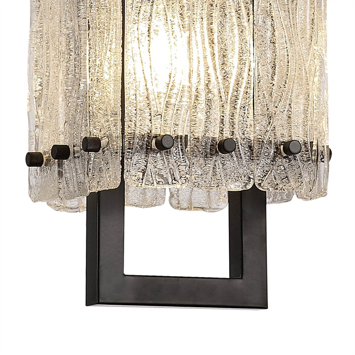 Sorrel is another ingeniously invented decorative concept across a comprehensive range of pendants with matching wall, table and floor lamp. Rectangular pieces of glass with a crystallised frosted pattern are held onto the frames with black caps to match the colour of the frame. The fixings are positioned at either end of the glass so the theme appears as a reimagined xylophone. These unique features add a dramatic statement to their given setting.