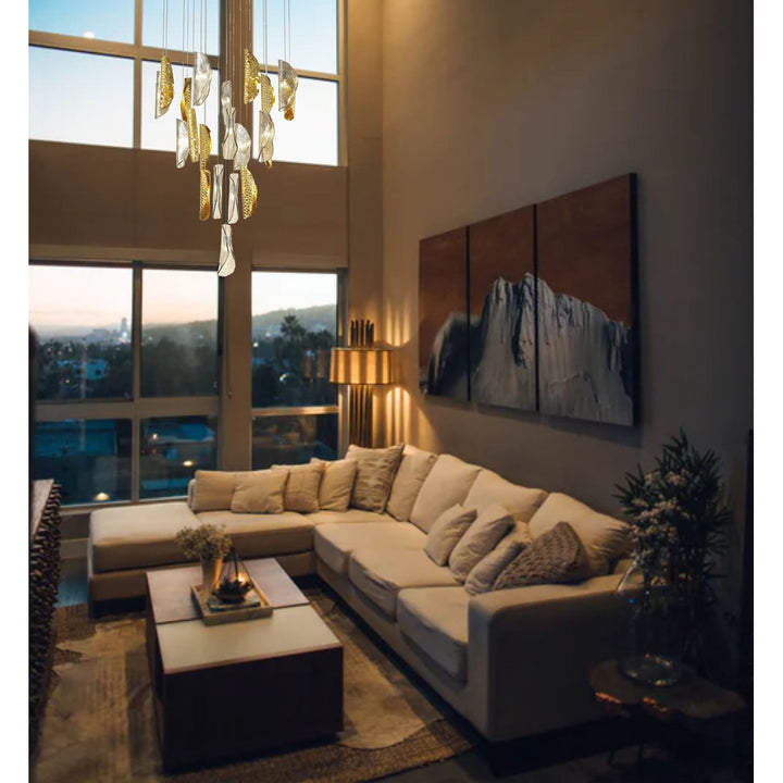 Taki Pendant 5M 21 Light Brass/Copper & Cognac Glass