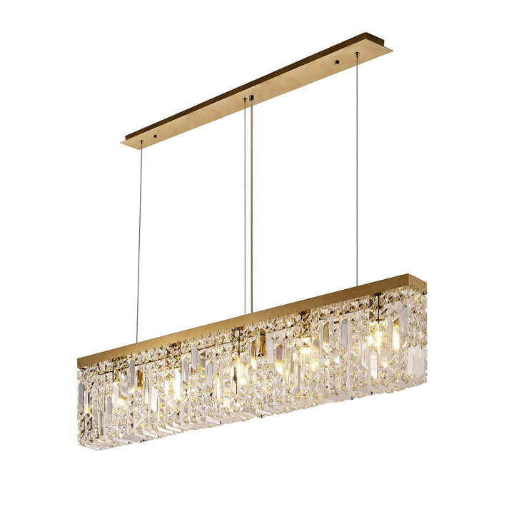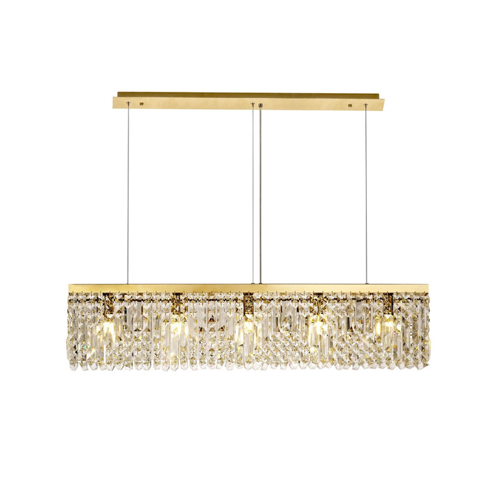 Nelson Lighting NL78189 Zian 102x9cm Rectangular Pendant Chandelier 5 Light Gold/Crystal