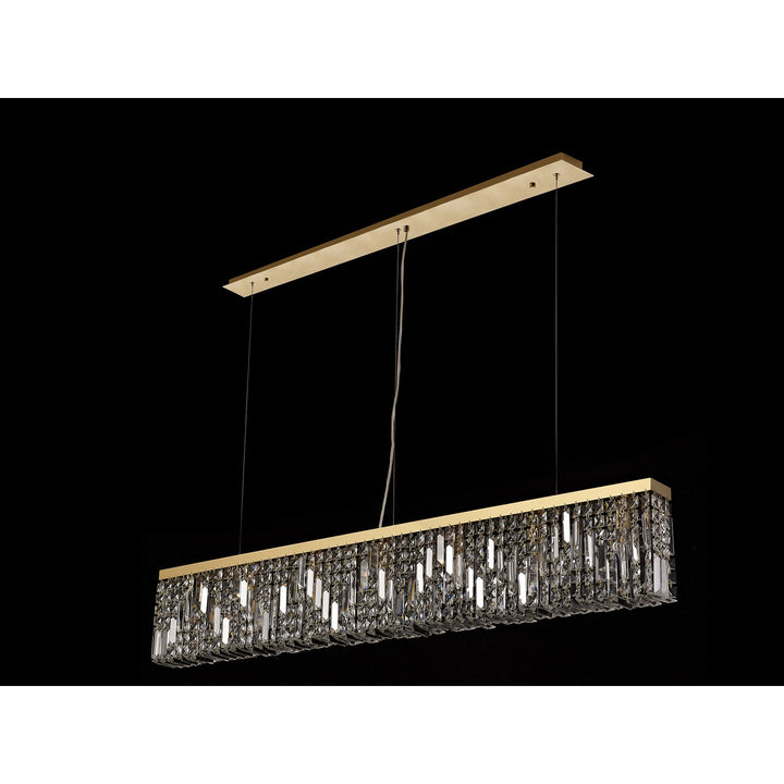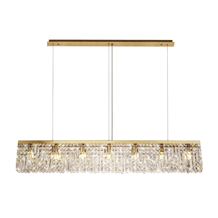 Zian 138x9cm Rectangular Pendant Chandelier 7 Light Gold/Crystal