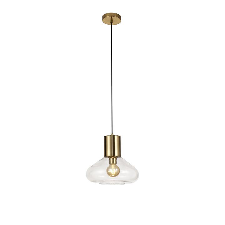 Olivia Wide Pendant 1 Light Ancient Brass/Clear Glass