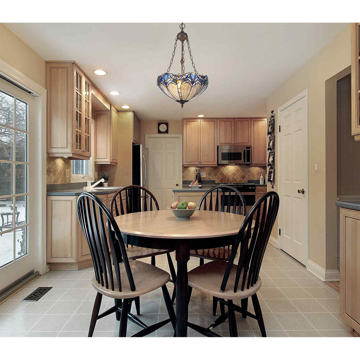 Ossie 1 Light Down Light Pendant With 30cm Tiffany Shade Blue/Clear Crystal/Aged Antique Brass
