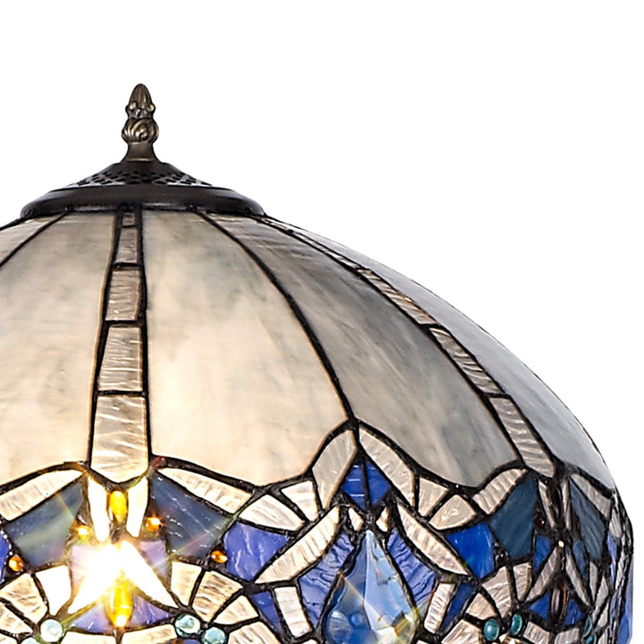 Ossie 2 Light Leaf Design Floor Lamp With 40cm Tiffany Shade Blue/Clear Crystal/Aged Antique Brass