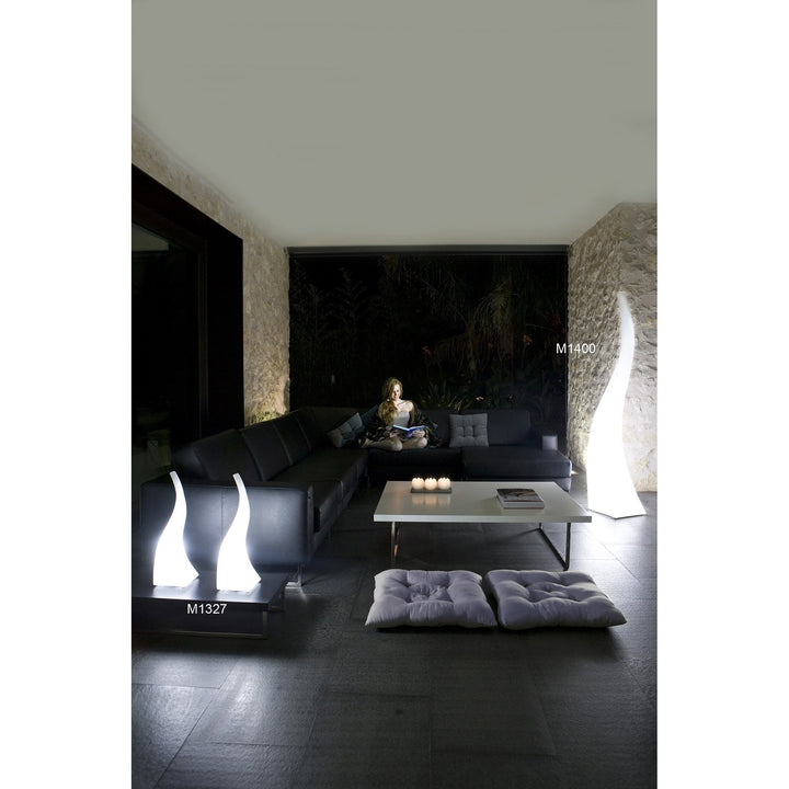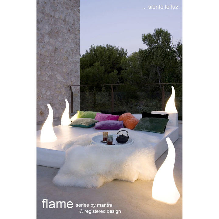 Flame is an iconic collection that comes from observing the movement of fire in nature, dancing with the light around the bonfire, going up sculpturally on an harmonic spiral. This exquisite creation has been designed for both indoor or outdoor use. The unique body is produced from high grade polyethylene and mounted on a white epoxy finish metalwork. The soft and elegant lines on the floor lamp are illuminated to perfection with the combination of GU10 and E27 lamp holders, ensuring the light can reach the pinnacle of the structure. The table lamps are also available as an induction charged model which creates a fully portable product that can be placed wherever the need arises. With built in RGB LEDs an endless option of ambient lighting can be achieved. Flame inspired by the name, offers a flare of illumination second to only nature itself.