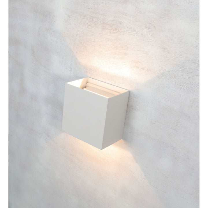 Available in a cube or cylindrical shape, the 3D aspect of the Davos wall lights provide more of a presence in their given setting with an impressive 1100lm output. The two 6W integral LEDs illuminate from both the top and the bottom of the anthracite or white metal framework, producing a bi-directional light source. This collection is perfect for outdoor use combining style with durability and an IP54 rating.