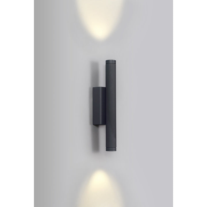 Neve is available in either a dark grey, black or polished chrome finish. The tubular form of these wall lights is reminiscent of metal piping with two embedded rings at either end. The integral 3000K LEDs give the fitting an extended longevity of use along with the durability of the fixtures given their IP54 rating making them suitable for outdoor use.