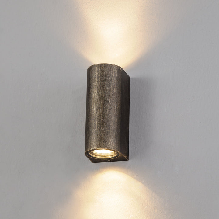 These outdoor IP54 rated wall lamps emulate a rustic urban atmosphere with their weathered colour finishes. The curved wall lamps use a black base with brushed flecks of gold whilst the rectangular version uses strokes of black and silver. This effect diminishes any impact from outdoor elements ensuring a reliable longevity of use even in harsher weather.