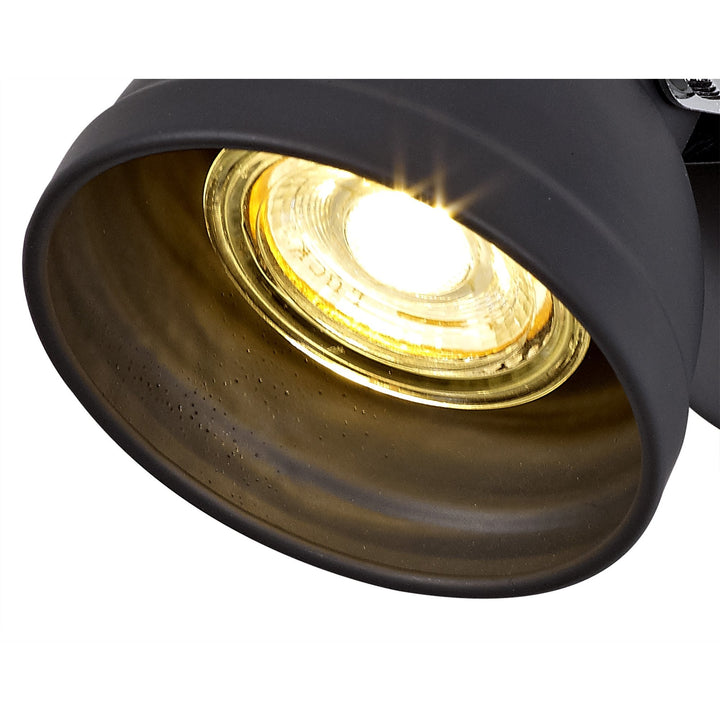 Tabby is a collection of LED only GU10 spotlights that are designed in the image of classic stage lighting with the metal spotlights shaped like lampshades with an adjustable directionality. This depiction will boost the character of a room, building upon the theme or as a stand-alone attraction. The 3 light round fitting, 4 light bar and 1 light are all available in either a matt grey and chrome or oiled bronze with chrome colour finish.
