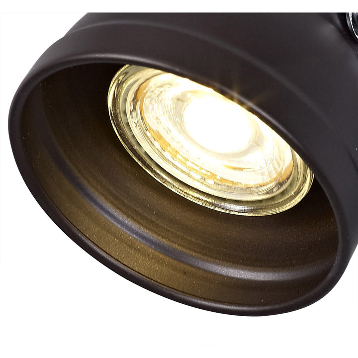 Tabby is a collection of LED only GU10 spotlights that are designed in the image of classic stage lighting with the metal spotlights shaped like lampshades with an adjustable directionality. This depiction will boost the character of a room, building upon the theme or as a stand-alone attraction. The 3 light round fitting, 4 light bar and 1 light are all available in either a matt grey and chrome or oiled bronze with chrome colour finish.