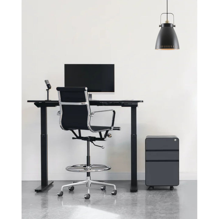 Bojam is a comprehensive range which awards a number of original features to a classic design concept. A familiar metal, narrow domed shade houses the E27 lamp holder on a selection of pendants and matching wall, table and floor lamp. Our designers have given these adjustable fixtures a modern twist firstly with the colour finishes of each component. The majority of the fittings have a matt black finish with the lamp holders and adjustable bolts coated in antique brass. The most unique colour is on the inside of each shade which has a khaki finish; in order to further accentuate this whilst also adding another feature, the edge around the outer rims of the shades have small oval cut outs to display the inner shade and create fascinating shadows when illuminated.