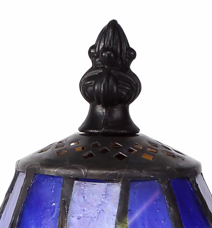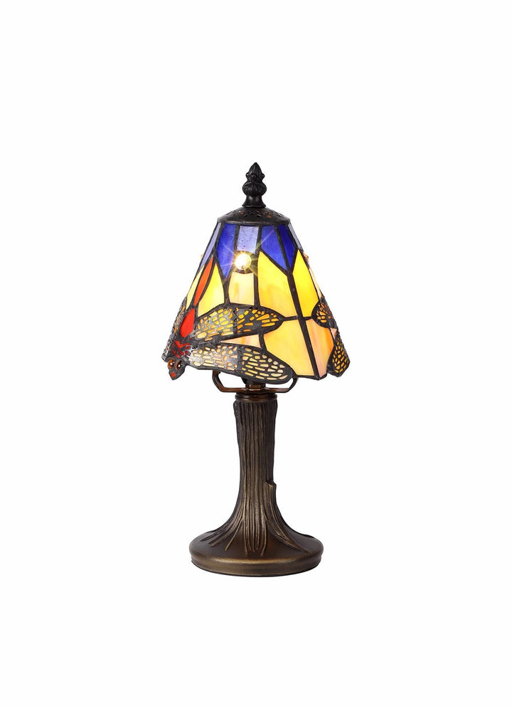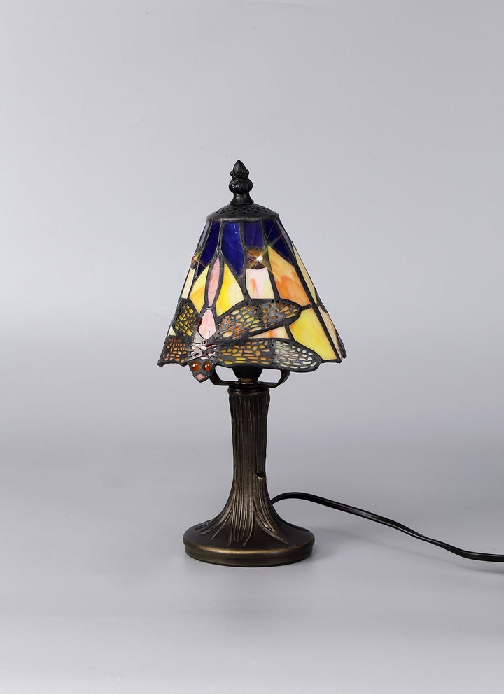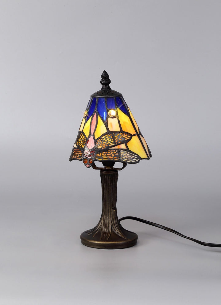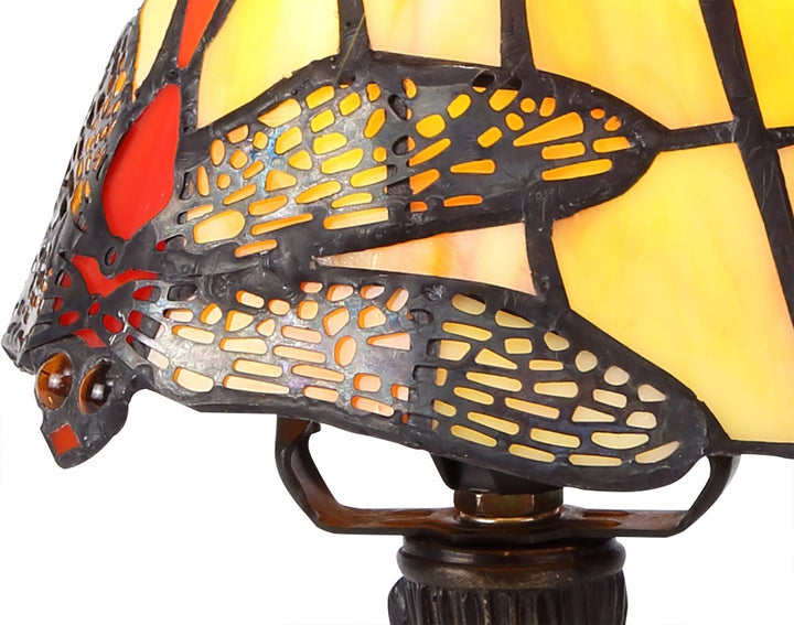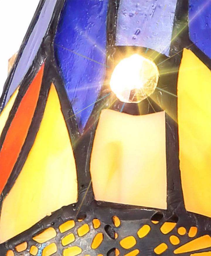 NL82729 Heidi Tiffany Table Lamp Black/Gold, Blue/Orange/Crystal Shade