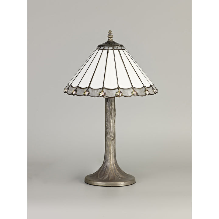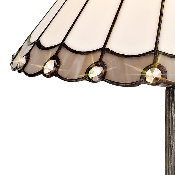 Umbrian 1 Light Tree Like Table Lamp With 30cm Tiffany Shade Grey/Chrome/Crystal/Aged Antique Brass