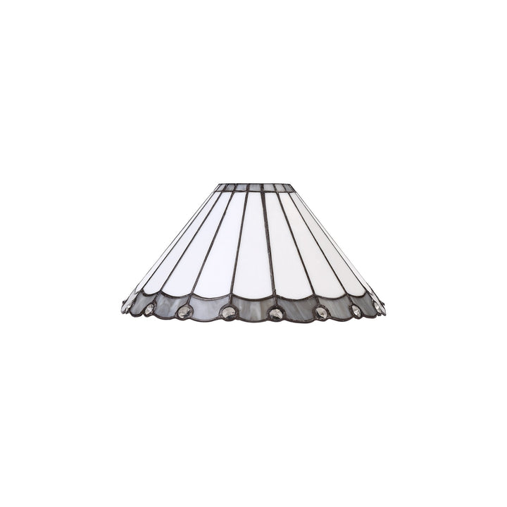 Umbrian uses a traditional Tiffany shade but with a modern twist. The fanned feather shapes forming the umbrella glass is mostly cream coloured with the curved tips of each point available in either green, brown, red, blue or grey. The modern component takes the form of small clear crystal pieces fixed on alternating points of the shades rim furthering the ranges regal appeal. The range of colours gives this products such a large range of settings with the table lamps, floor lamps, pendants and semi ceiling pendants