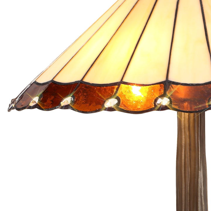 Nelson Lighting NLK02729 Umbrian 2 Light Curved Table Lamp With 40cm Tiffany Shade Amber/Chrome/Antique Brass
