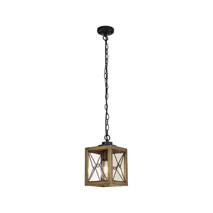 NL83739 Rowley Outdoor Pendant Wood Effect & Black/Clear Glass