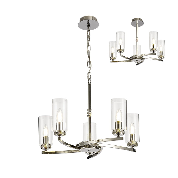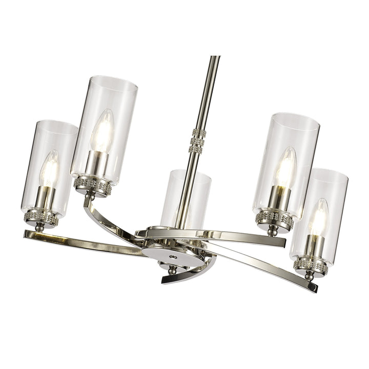 The Nelson Lighting NL73109 Darling 5 Light Pendant exudes traditional elegance with modern flair. The polished nickel finish paired with clear glass and sparkling crystal accents makes it a stunning centerpiece for any space.