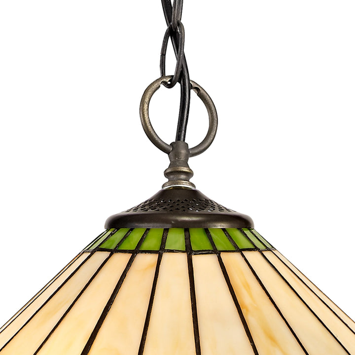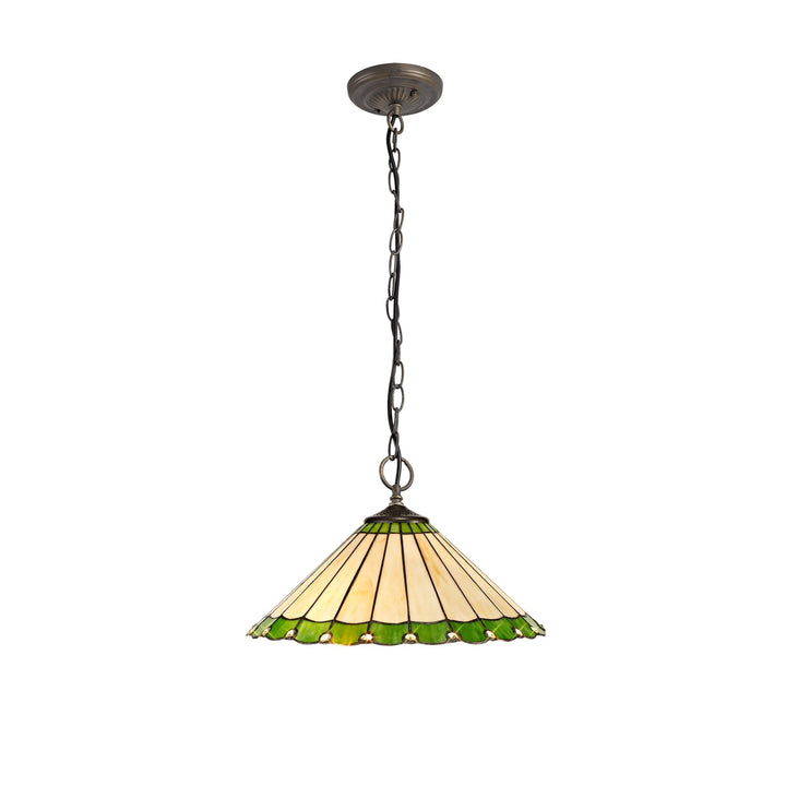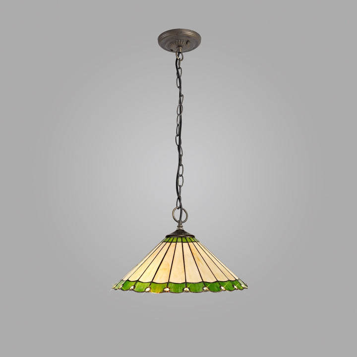 Umbrian 3 Light Down Lighter Pendant With 40cm Tiffany Shade Green/Chrome/Crystal/Aged Antique Brass