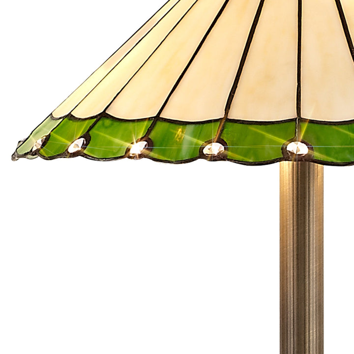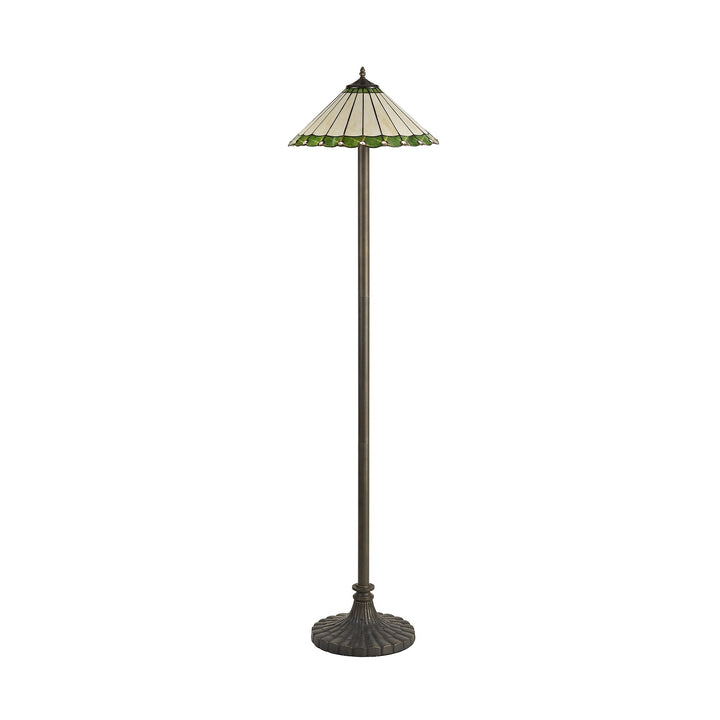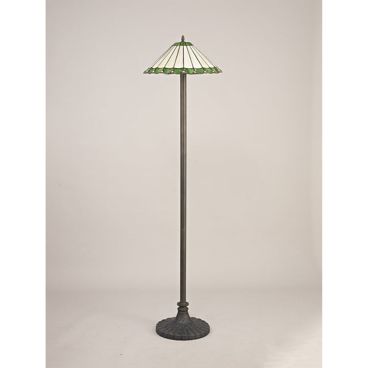 Umbrian 2 Light Stepped Design Floor Lamp With 40cm Tiffany Shade Green/Chrome/Crystal/Aged Antique Brass