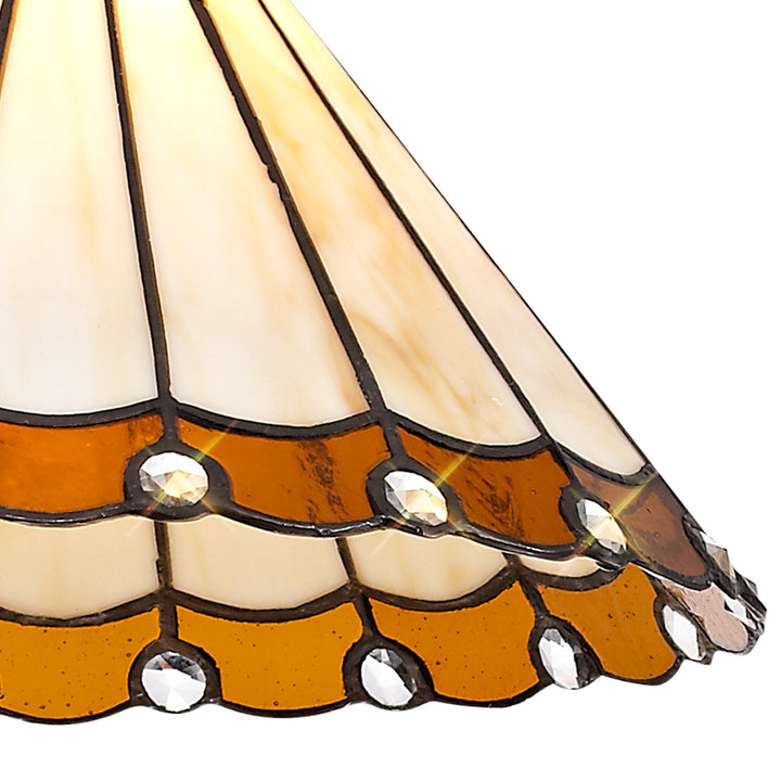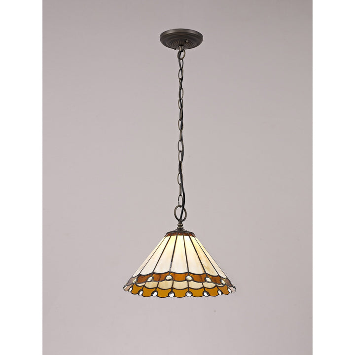 Umbrian 1 Light Down Lighter Pendant With 30cm Tiffany Shade Amber/Chrome/Crystal/Aged Antique Brass