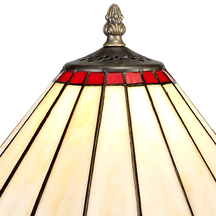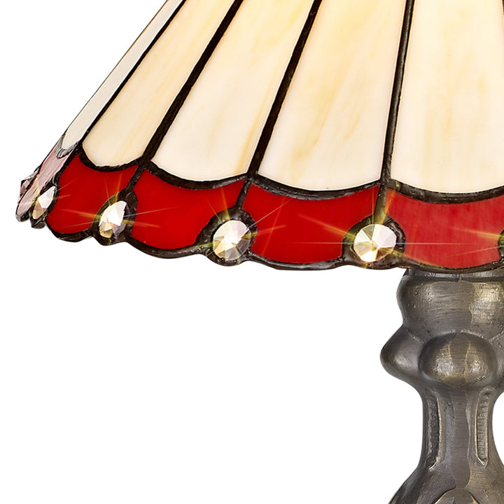 Umbrian 1 Light Curved Table Lamp With 30cm Tiffany Shade Red/Chrome/Crystal/Aged Antique Brass