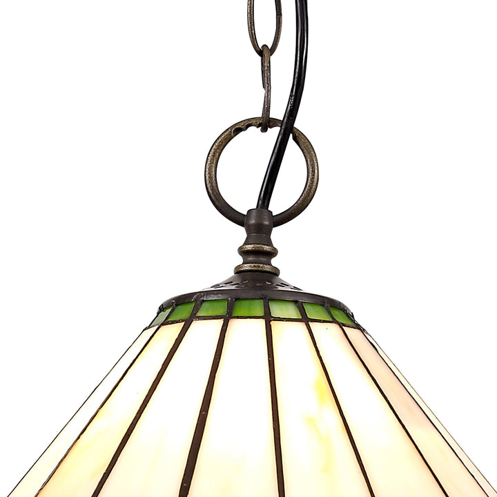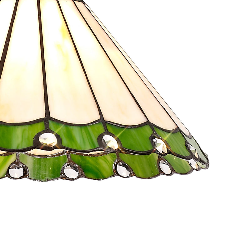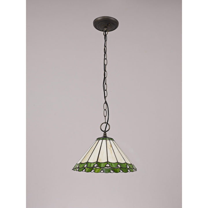 Umbrian 1 Light Down Lighter Pendant With 30cm Tiffany Shade Green/Chrome/Crystal/Aged Antique Brass