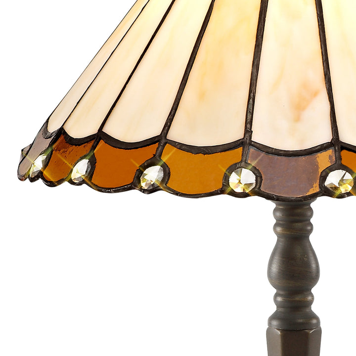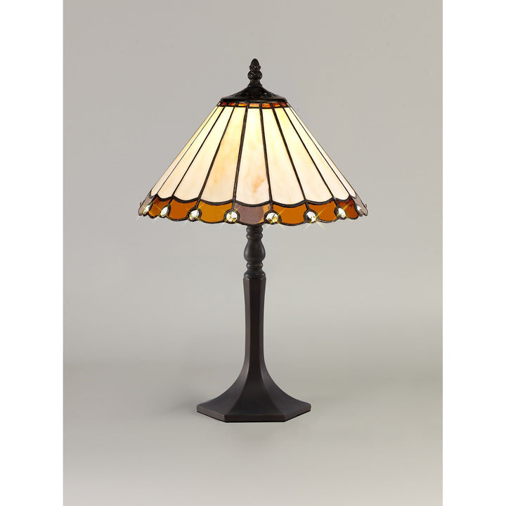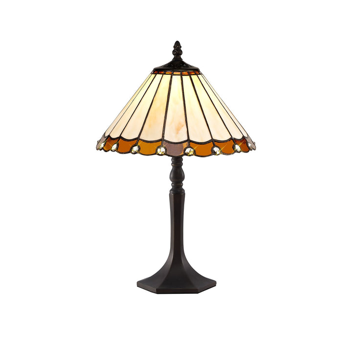 Umbrian 1 Light Octagonal Table Lamp With 30cm Tiffany Shade Amber/Chrome/Crystal/Aged Antique Brass