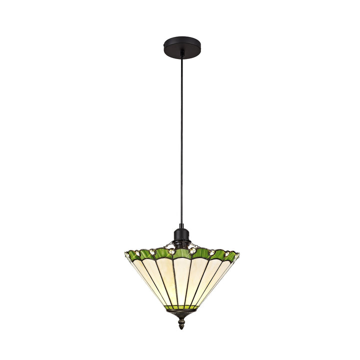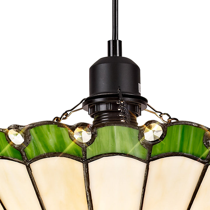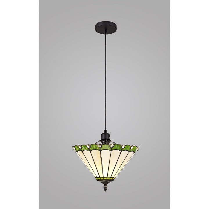 Umbrian 1 Light Up Lighter Pendant With 30cm Tiffany Shade Green/Chrome/Crystal/Black