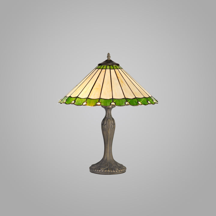Umbrian 2 Light Curved Table Lamp With 40cm Tiffany Shade Green/Chrome/Crystal/Aged Antique Brass