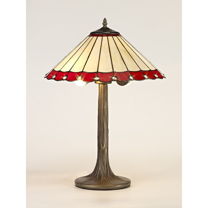 Nelson Lighting NLK02939 Umbrian 2 Light Tree Like Table Lamp With 40cm Tiffany Shade Red/Chrome/Antique Brass