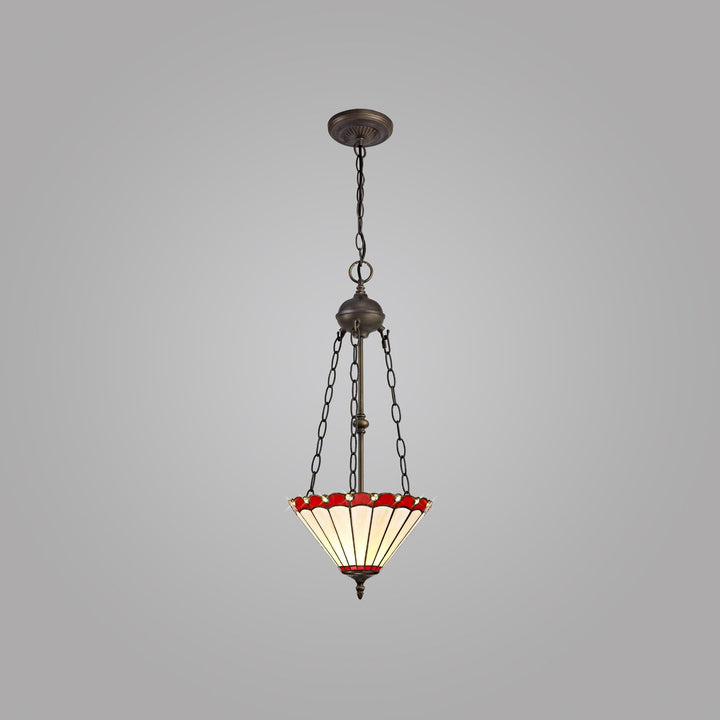 Umbrian 2 Light Up Lighter Pendant With 30cm Tiffany Shade Red/Chrome/Crystal/Aged Antique Brass