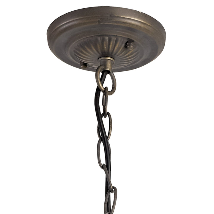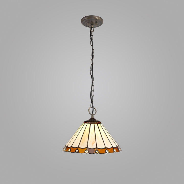 Umbrian 3 Light Down Lighter Pendant With 30cm Tiffany Shade Amber/Chrome/Crystal/Aged Antique Brass