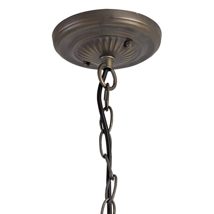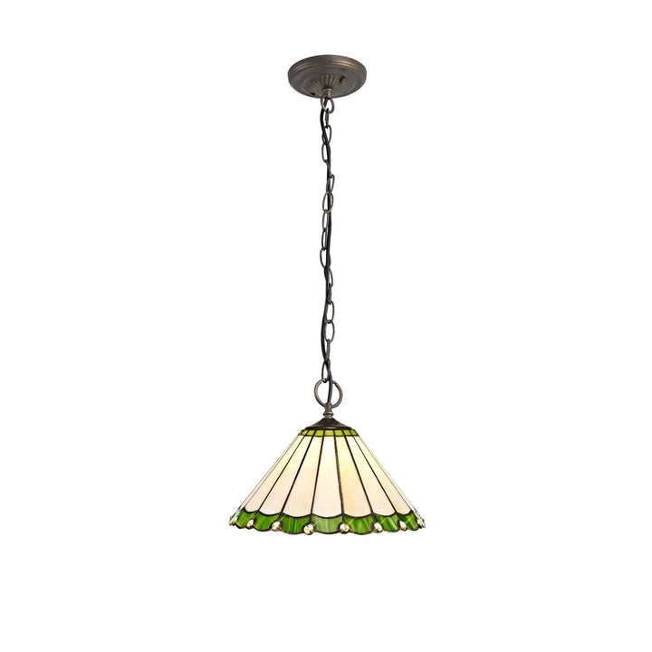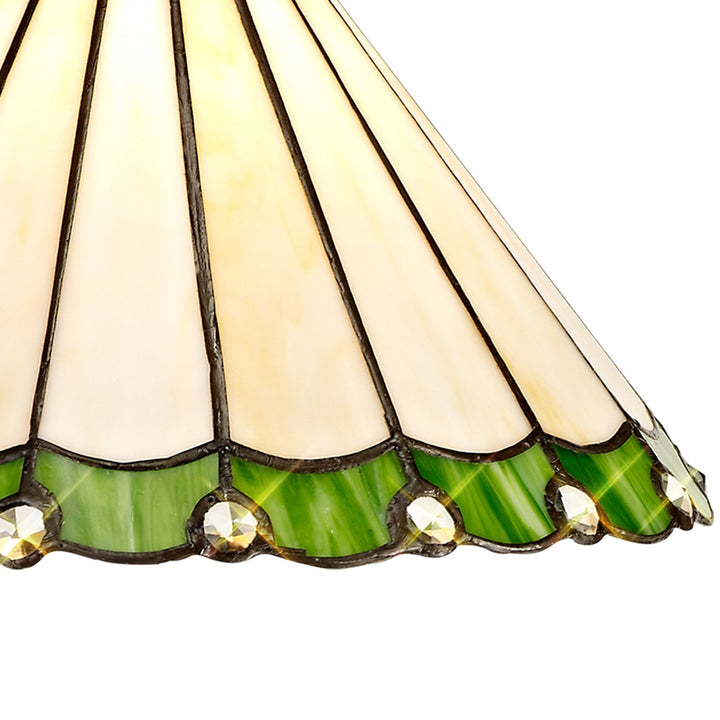 Umbrian 3 Light Down Lighter Pendant With 30cm Tiffany Shade Green/Chrome/Crystal/Aged Antique Brass
